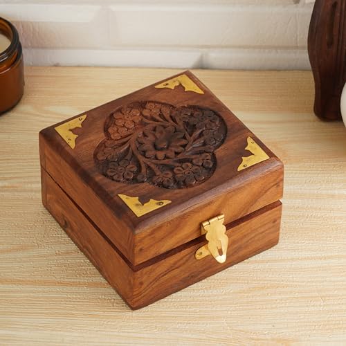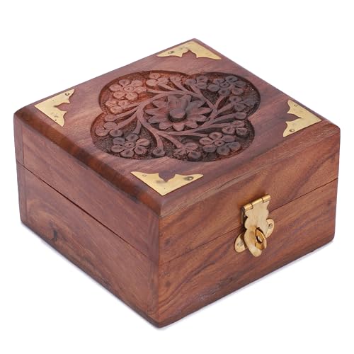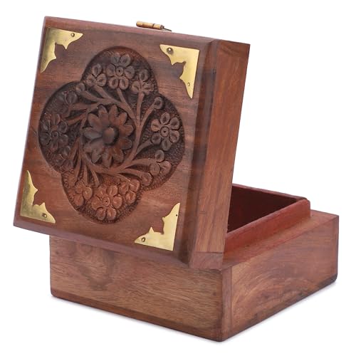 - Schöne Kreation mit aufwendigen floralen Handschnitzereien und Messing-Intarsien, mit Samt-Innenseite, um sicherzustellen, dass der Inhalt frei von Kratzern bleibt