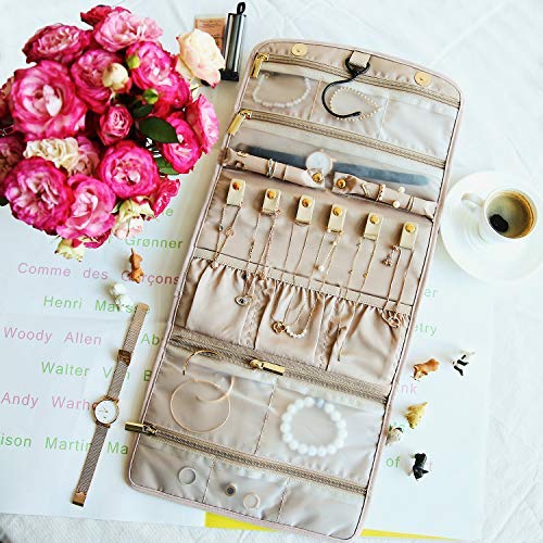 - 4 Arten von Zonen: Halskette Knöpfe, Machen Sie Ihre Halskette nicht verknoten; Ohrringpanel: Ihre Ohrringe können in das Panel eingelegt, fixiert und ausgerichtet werden; Transparente Reißverschlusstaschen: Sie können das Schmuck auf einen Blick sehen und leicht zu finden.
