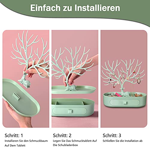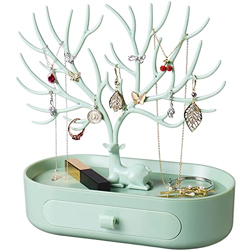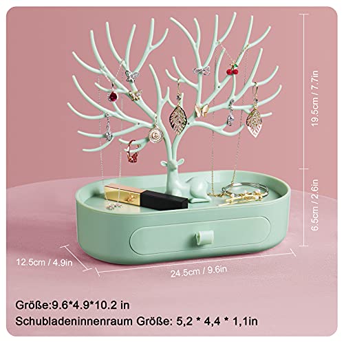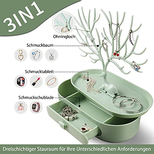 Geweih schmuckständer mit Schubladen, penobon Schmuckbaum Mädchen, Schmuckhalter aus Plastik, Ohrringständer/ Ringständer/ kettenständer (Grün)