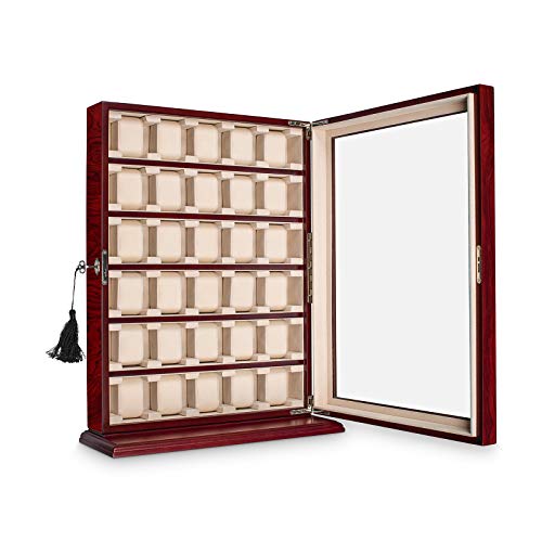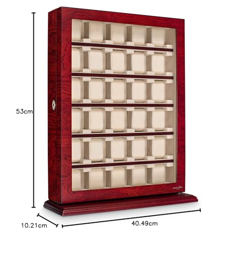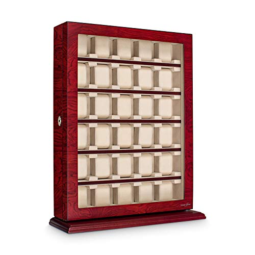 Hermann Jäckle – Uhrenvitrine Herrenberg I Vitrine für 30 Uhren I Uhrenbox Holz I Uhrenkasten rot mit Bubinga Dekor I Uhrenaufbewahrung I Uhrenbox für Armbanduhren I abschließbare Uhren-Box