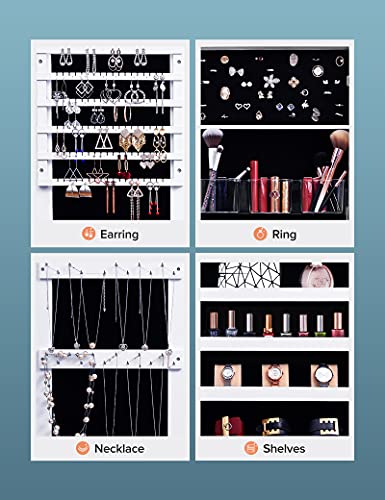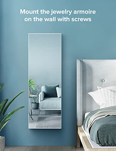 Nicetree Schmuckschrank mit Spiegel, Wandschrank mit Spiegel für Ketten, Ohrringe, Armband, Hängende Standschrank , Wandmontage, Weiß, Abschließbar, Ideal für Geschenke