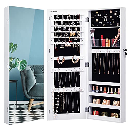- 【2 IN 1 SCHMUCK SCHRANK MIT SPIEGEL】Es ist nicht nur ein Spiegel, sondern auch ein Schmuckschrank. Mit viel Stauraum können Sie all Ihren Schmuck und Ihre Kosmetik an einem Ort aufbewahren. Es macht den Raum aufgeräumter, Sie müssen sich keine Sorgen machen, dass Sie Ihren Schmuck verlieren.